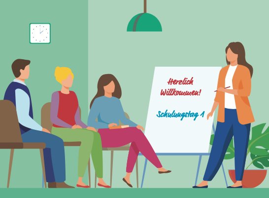 - Die Schulung beinhaltet eine 8-stündige Hospitation und einen Erste Hilfe Kurs.